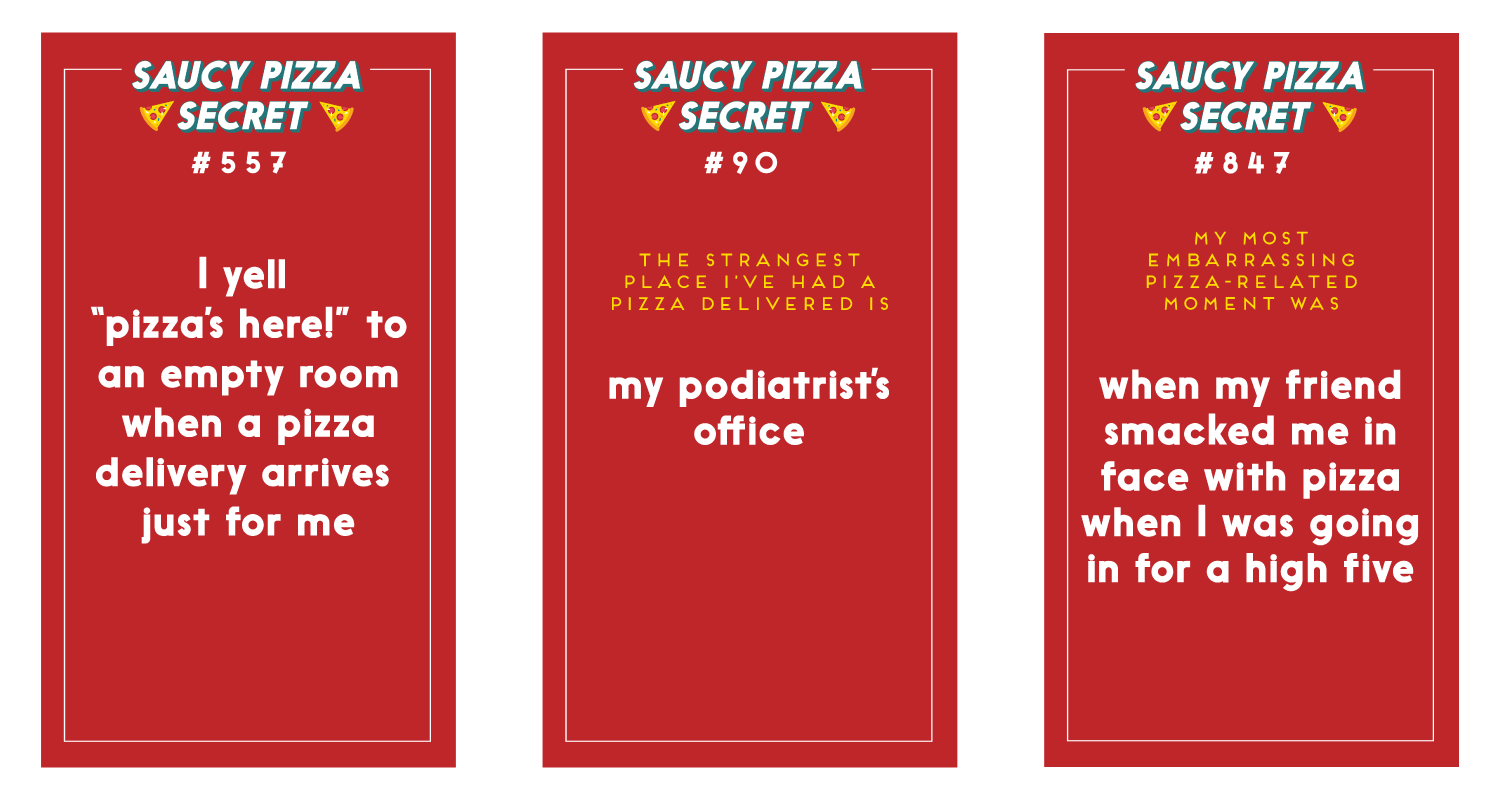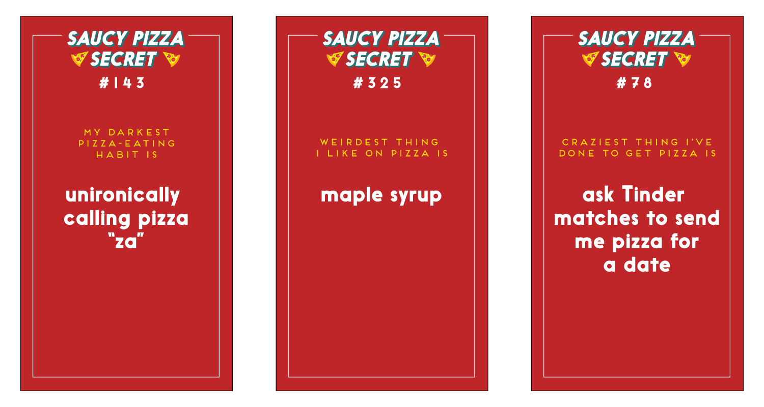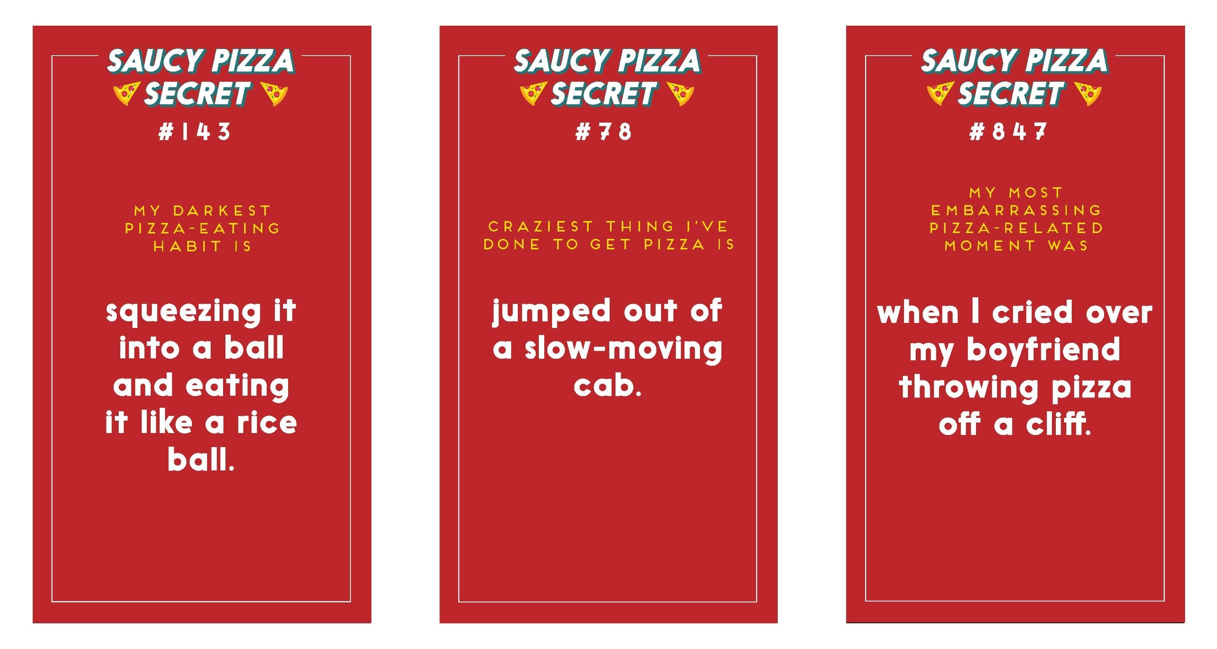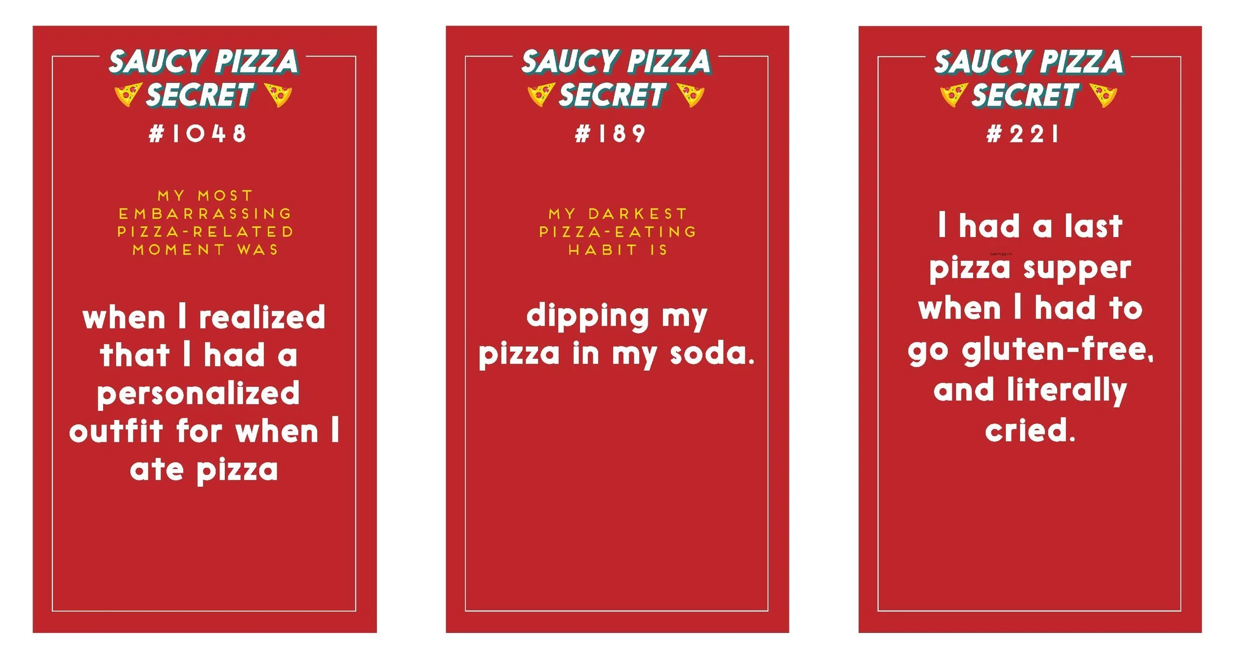 Inspired by New Yorker’s strong stance on New York Style pizza, our ‘How New York Eats Pizza’ exhibit invited New Yorkers to quietly confess their sauciest pizza secrets. Maybe they’re reluctant deep dish fans after all. Or maybe they dip their pizza in pop when no one is watching (yes, this was a confession).
